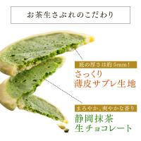 抹茶生チョコサブレはミルキーな甘さのホワイトチョコと、静岡県産一番茶の静岡抹茶を合わせた生チョコレートを薄いサブレで包み込んだ、半生食感の焼き菓子です。