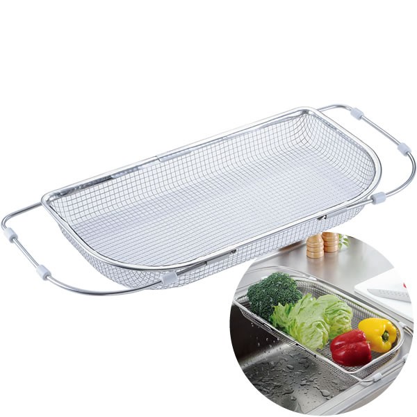 - 接点がすべて溶接された丈夫な網を使用。水切れが良く汚れもたまりにくい。スプーン等の小さいものが落ちない細かいメッシュです。