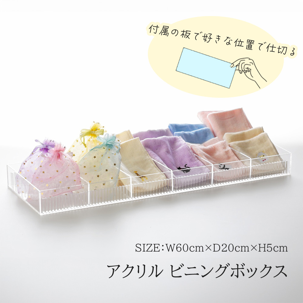 ビニングボックス 仕切板付き アクリルケース 【 幅60cm×奥行20cm×高さ5cmm ・ 仕切板5枚 】 Aタイプ 陳列 アクリルBOX 収納ケース ビニングケース 透明