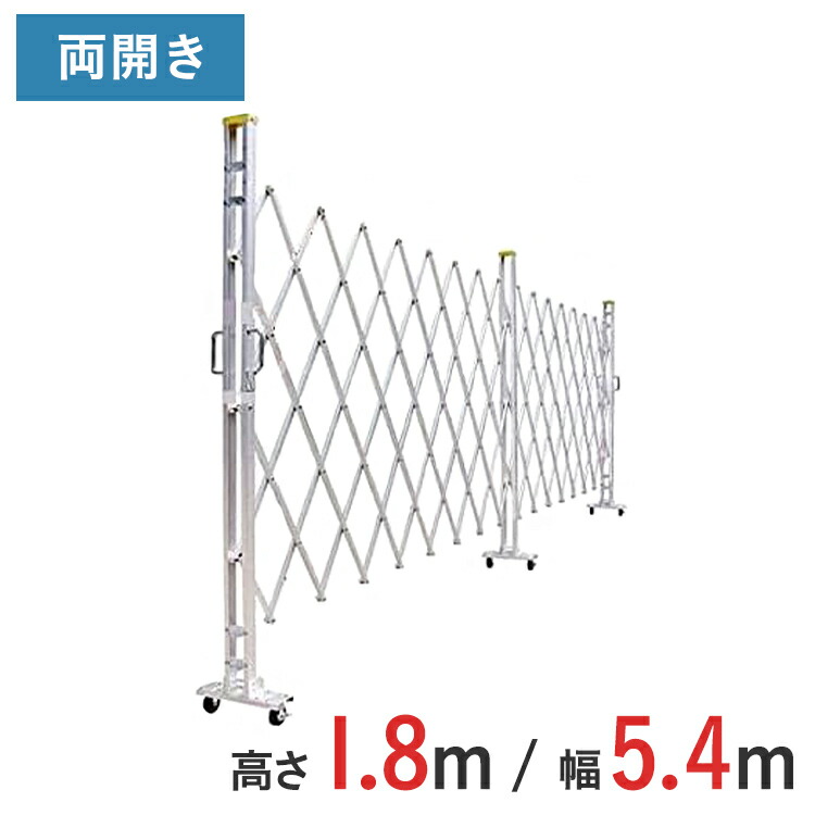 アルミキャスターゲート 両開き アルミ 高さ 1.8 m × 幅 5.4 m 18AYW-54-27 | アルミゲート 仮設ゲート 伸縮門扉 クロスゲート アルミフェンス フェンス アコーディオンゲート 蛇腹ゲート 右開き 左開き