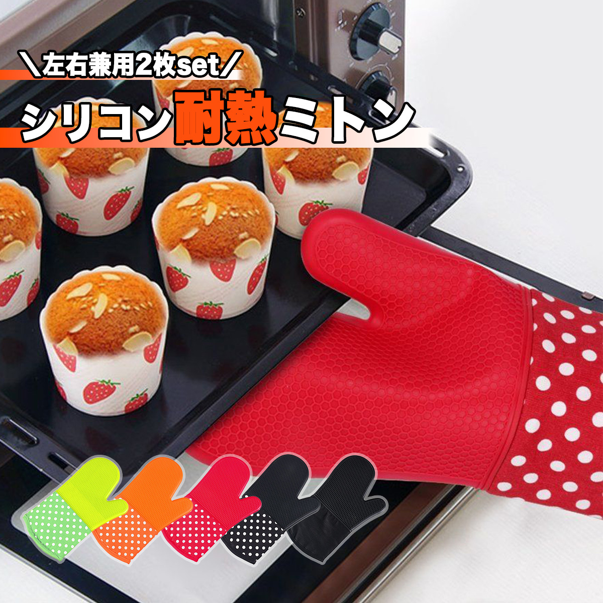 耐熱 ミトン オーブン キッチン グローブ 鍋つかみ シリコン かわいい 両手 業務用 300℃ 北欧 滑り止め