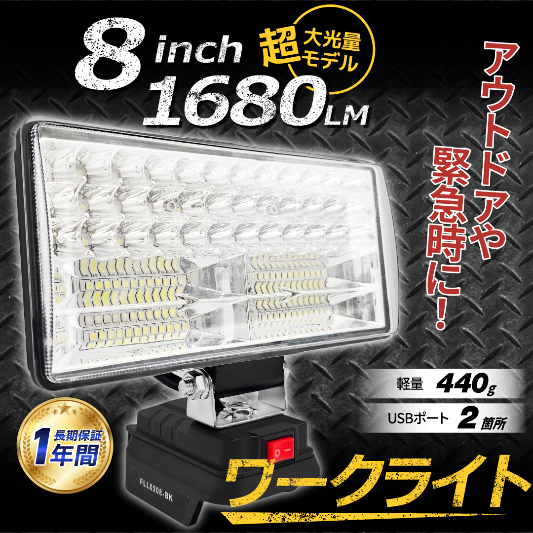 マキタ互換 充電式 1680ルーメン LED ワークライト 18V 作業灯 投光器 2口 USB 搭載 現場作業 アウトドア 防災用 Longsafe バッテリー別売 (FLL0208-BK)