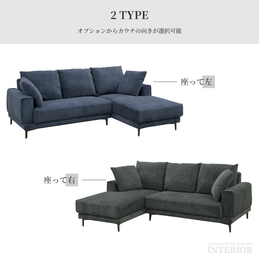 | カウチソファ:W147×D77×H58(cm) 2Pソファ:W134×D84×H58(cm) 全体サイズ:W210×D150×H80 SH39(cm) 【梱包サイズ】2P:135×86×59、カウチ:79×149×59(cm) | ||