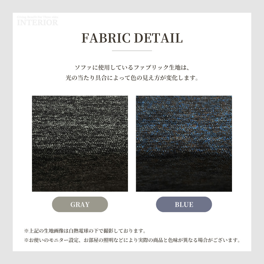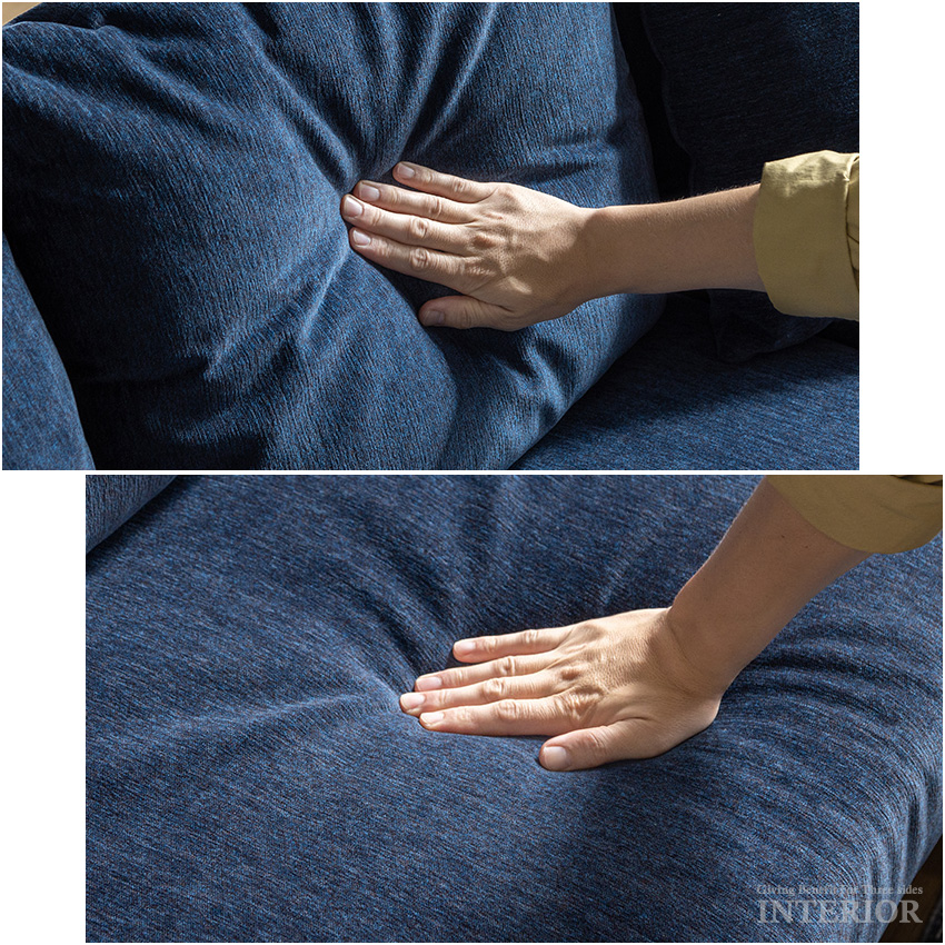 | ファブリックの温かみと重厚感のあるフォルムが特徴のソファです。幅210cmあるので、家族団らんで座ったり、ひとりで伸び伸びくつろいで座ることもできます。上品なカラーのブルーとグレーからお選びいただけます。足元はお掃除ロボットが通れるほどの十分な脚高があり、留守中でもお掃除可能です。ソファと同じデザインのクッションが2個付きます。 | ||