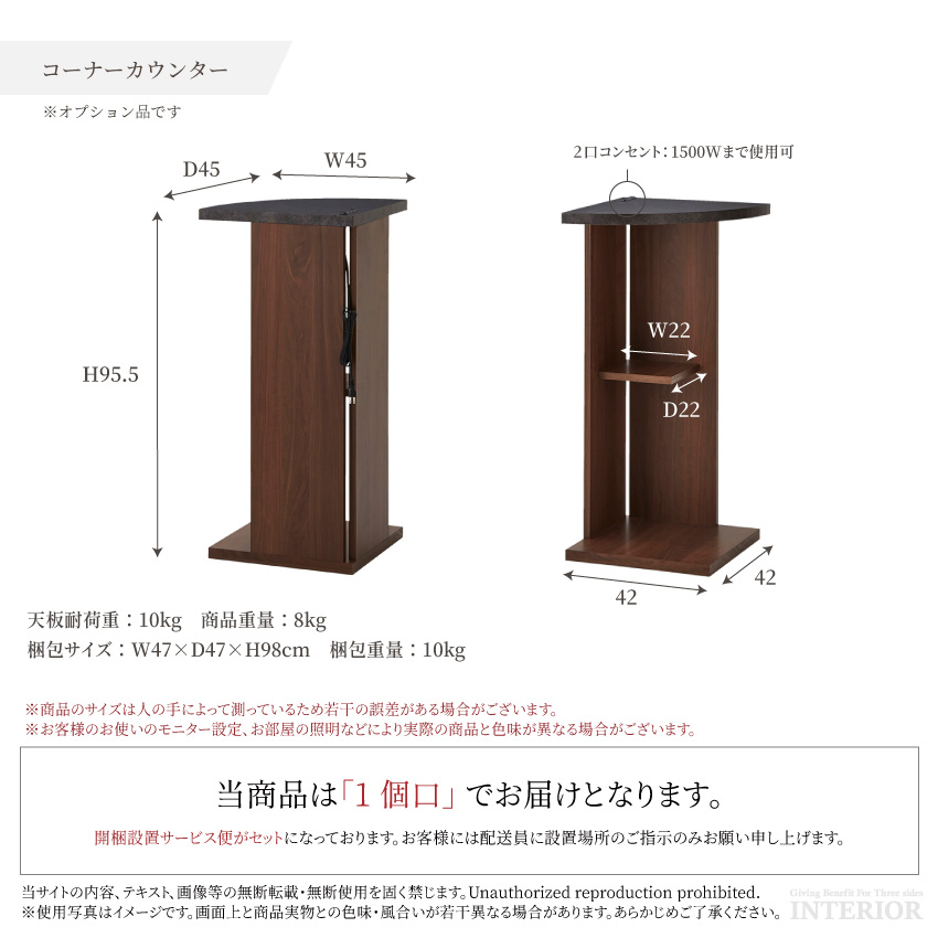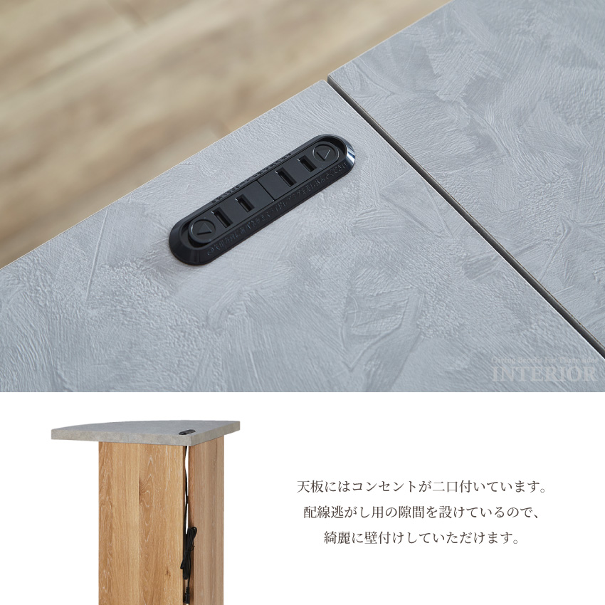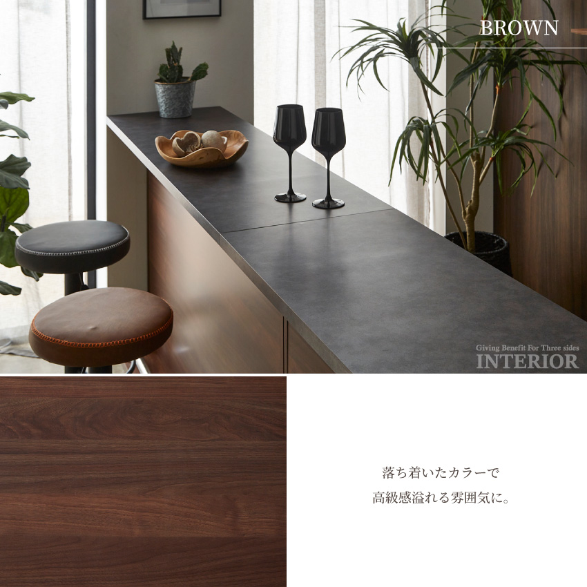 | 120cm幅のバーカウンター。本格的なバーの雰囲気を楽しめます。お家やお店など、幅広いテイストにマッチ。普段と気分を変えて、ゆったり優美な時間を過ごせます。無駄な装飾を省きシンプルに仕上げました。どんなお部屋にも合わせやすいアイテムです。石目調の天板と、木目調の組み合わせがオシャレ!お酒やグラス、食器などを収納できるスペースをご用意。背面収納ですっきりとした印象に。 | ||