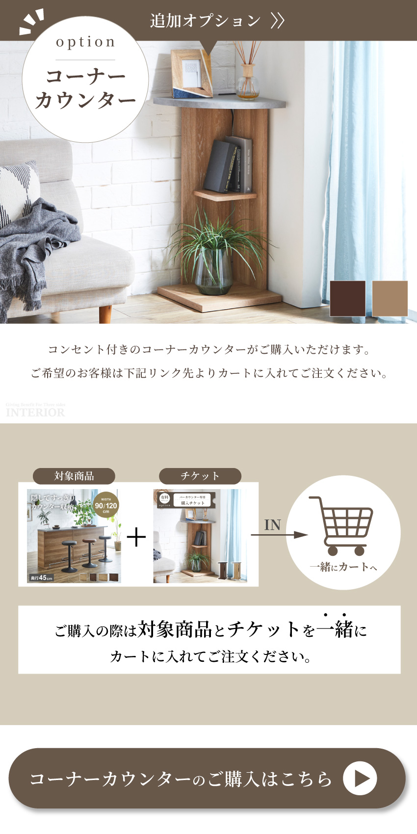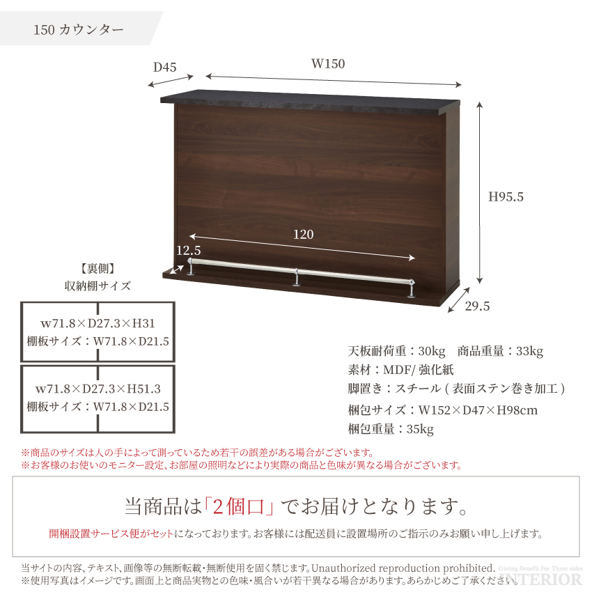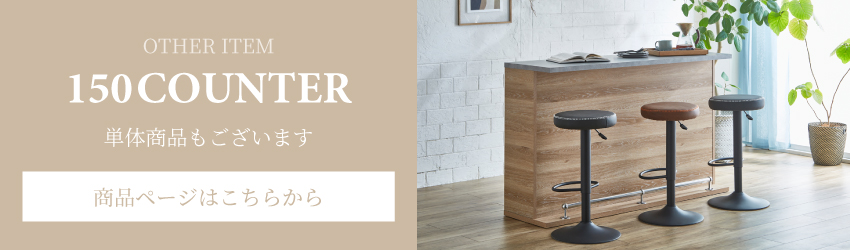 | 90カウンター:W90×D45×H95.5cm 90梱包サイズ:W92×D47×H98cm 150カウンター:W150×D45×H95.5cm 150梱包サイズ:W152×D47×H98cm | ||