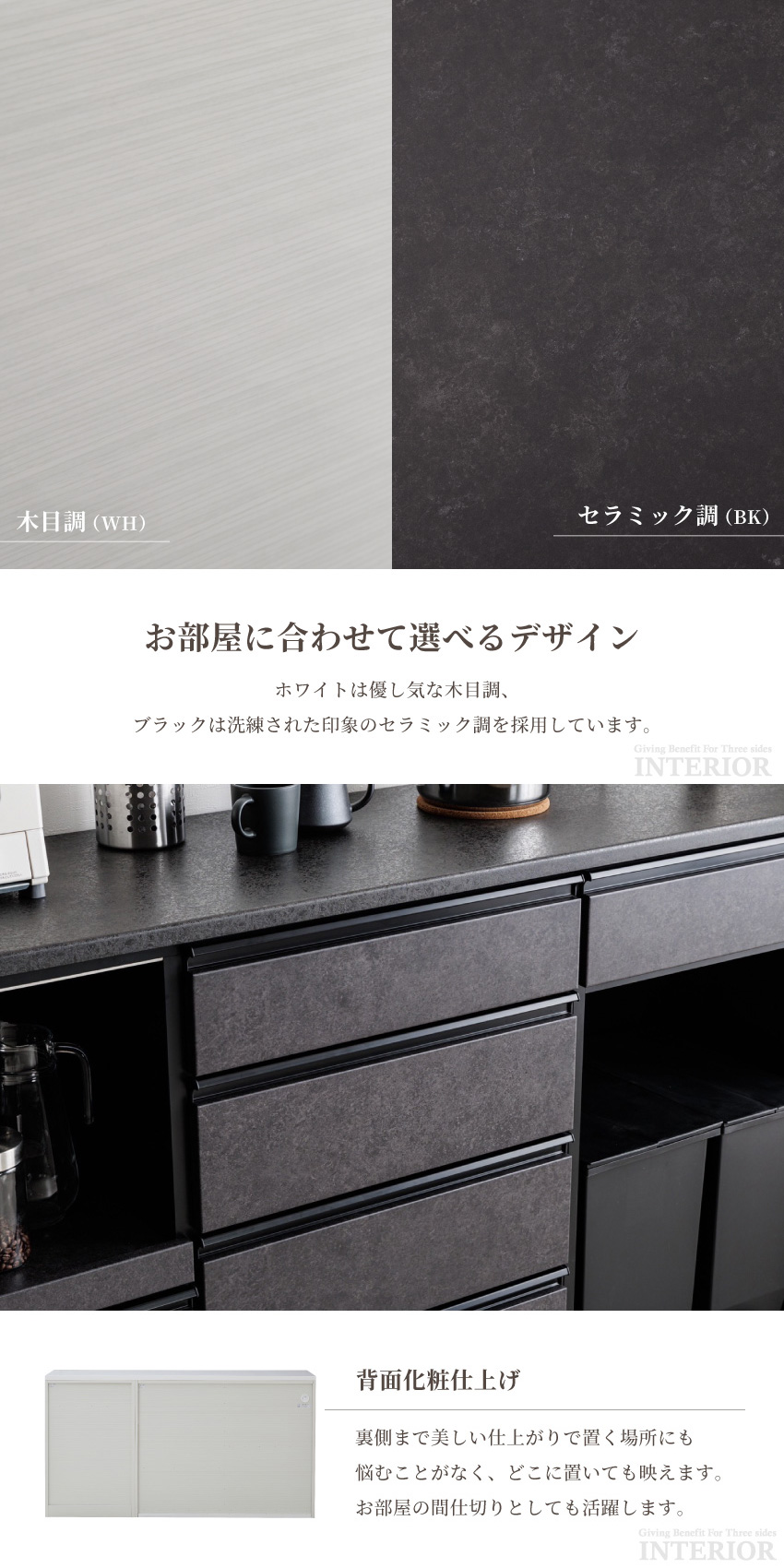 | ホワイト(木目調) ・ ブラック(セラミック調) | ||