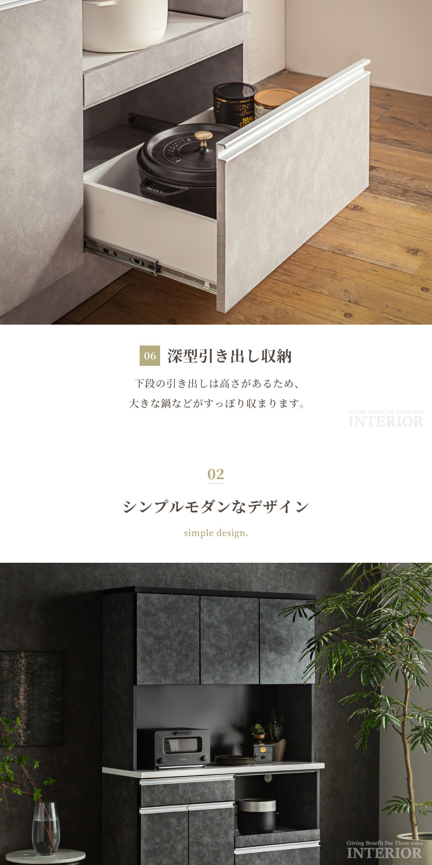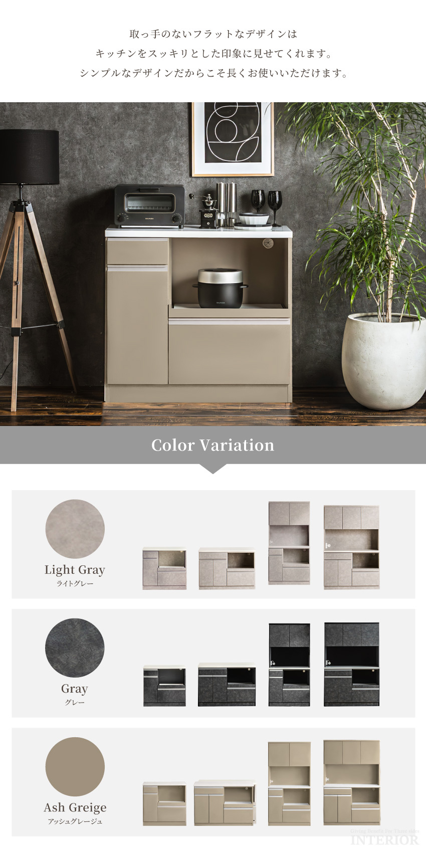 | キッチン周りの物がたっぷり収納できるカップボード。可動棚付きの戸棚があり、収納するものに合わせて自由に高さが調節できます。オープンスペースにはコンセントと消臭効果を備えたモイスを完備しているため、調理家電を置くのにぴったりです。スライドレール仕様の収納もあり、使うときだけ引き出すことができます。豊富なバリエーションをご用意しておりますので、キッチンに合わせてお選びいただけます。 | ||