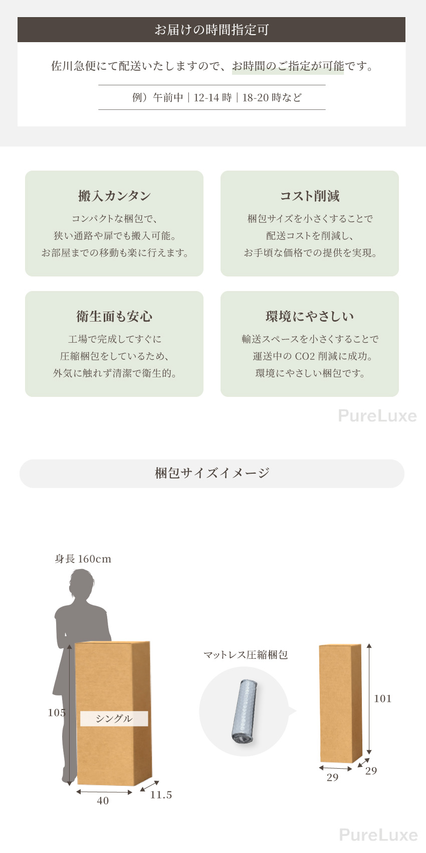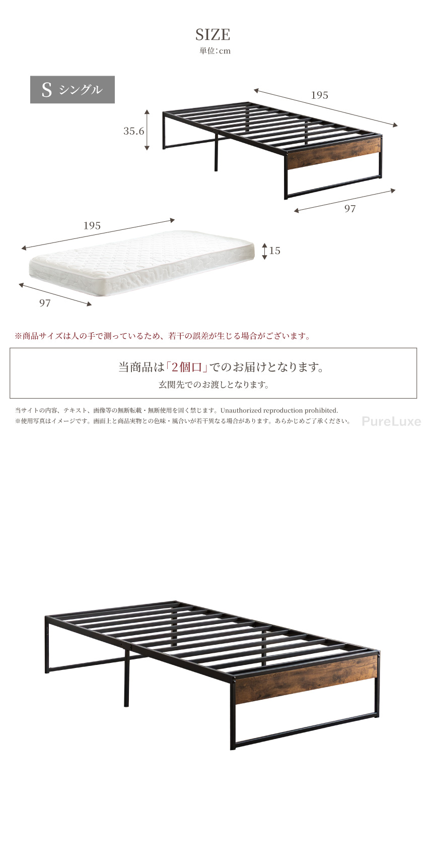 | パイプベッド:W97×D195×H35.6cm マットレス:W97×D195×H15cm | ||
