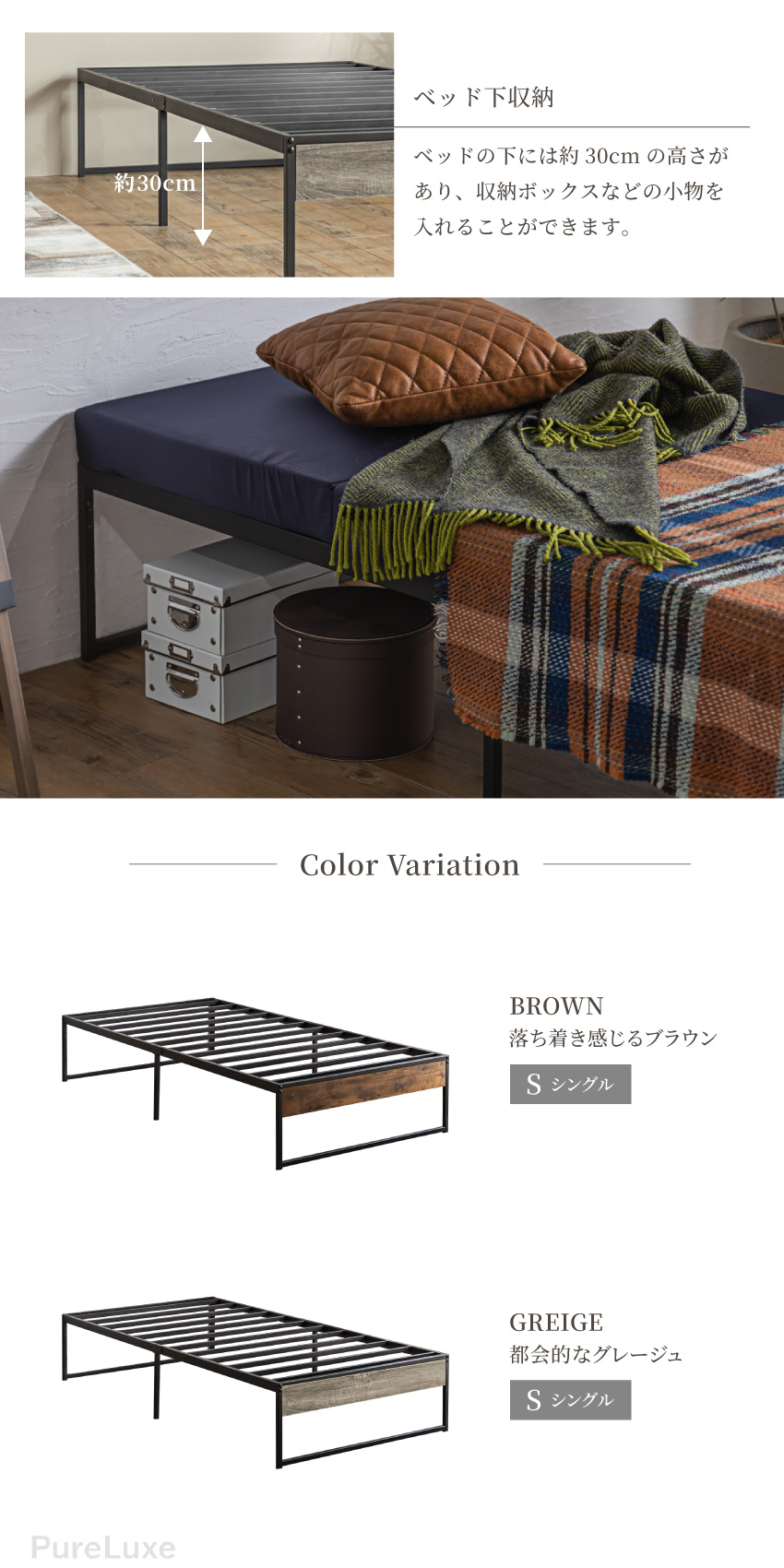 | 鉄フレーム×木目のモダンなパイプベッドマットレスセット。フレーム間隔が広く、通気性に優れているため梅雨時期にも快適にご使用いただけます。頑丈な鉄フレームで体をしっかりと支えてくれ、180kgの重みにまで耐えられます。フレームにはプラスチックカバーを施していますので、ギシギシという音を軽減してくれます。 | ||