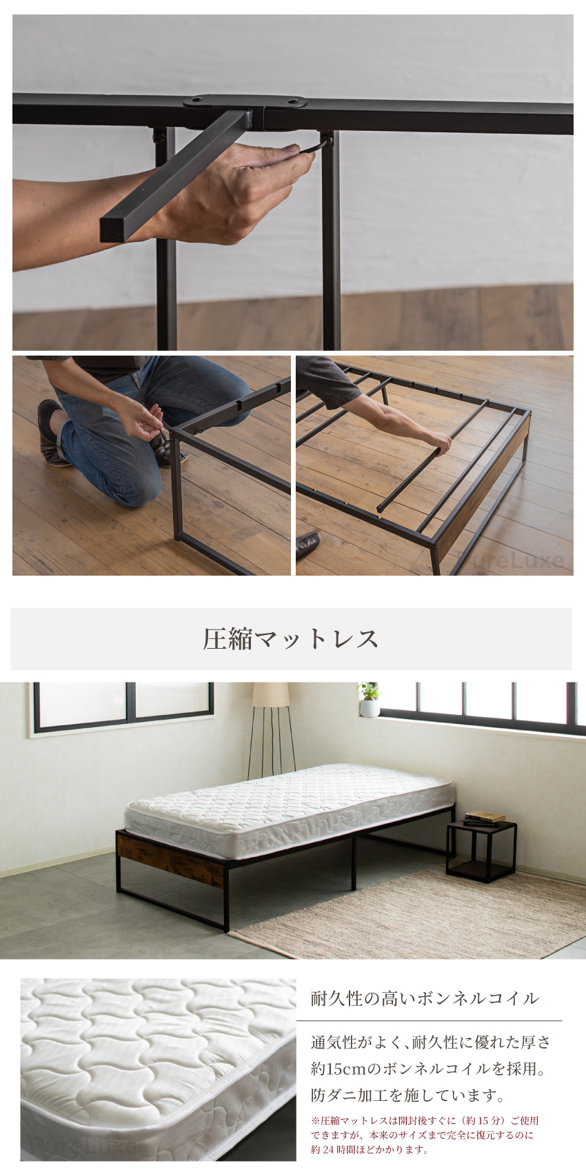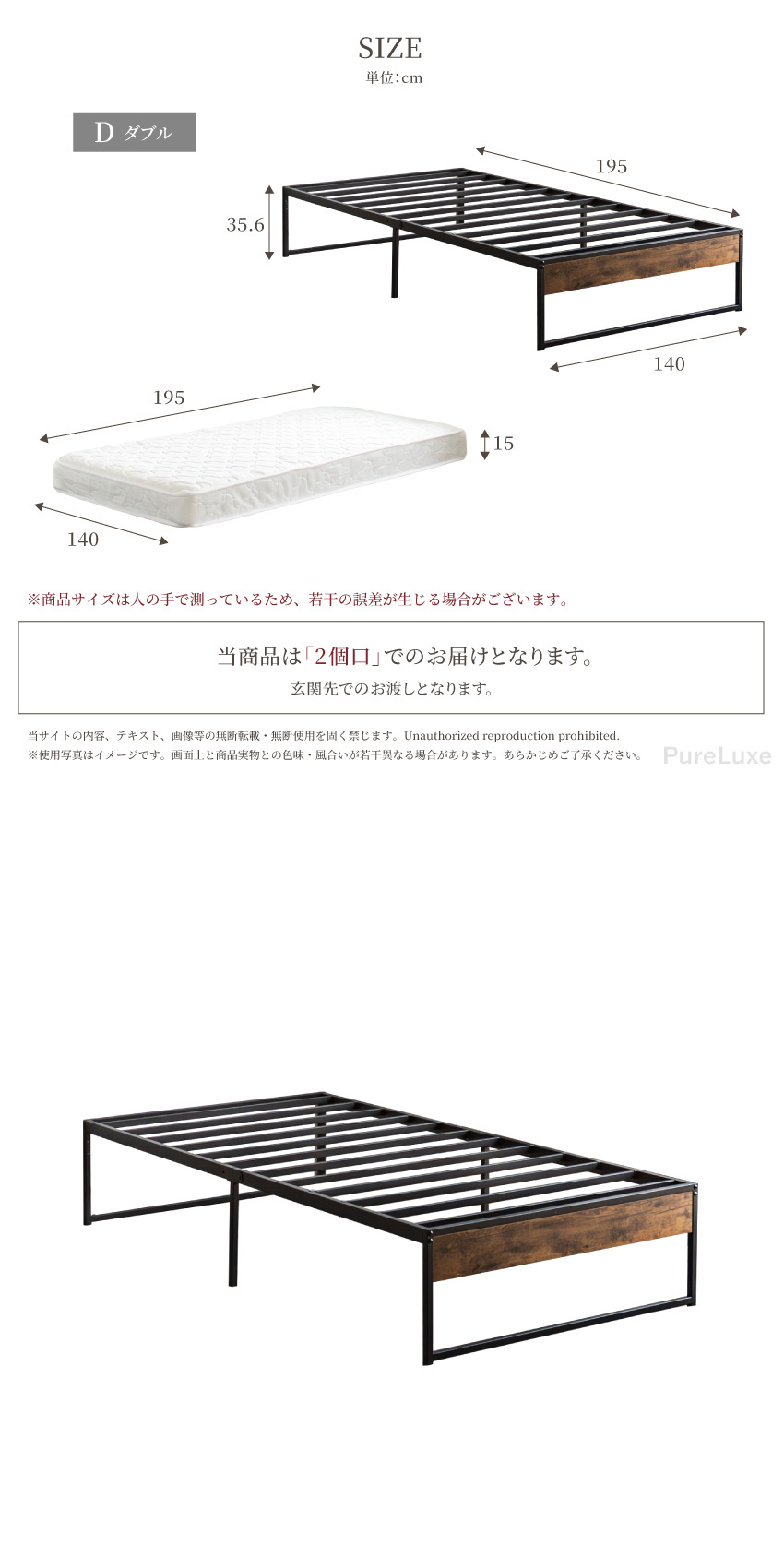 | パイプベッド:W140×D195×H35.6cm マットレス:W140×D195×H15cm | ||