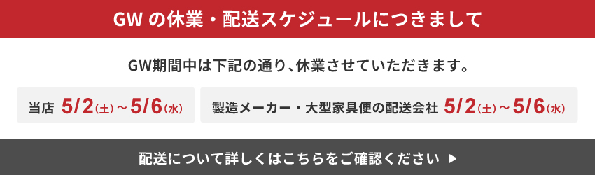 | 当店の家具には、保証書が付属しておりません。商品の保証は、メーカー保証にて商品到着より1年間となります。 ※一部商品を除く。 ご理解の程、宜しくお願い申し上げます。ご不明な点等ございましたら、当店までご連絡の程よろしくお願い申し上げます。 | ||