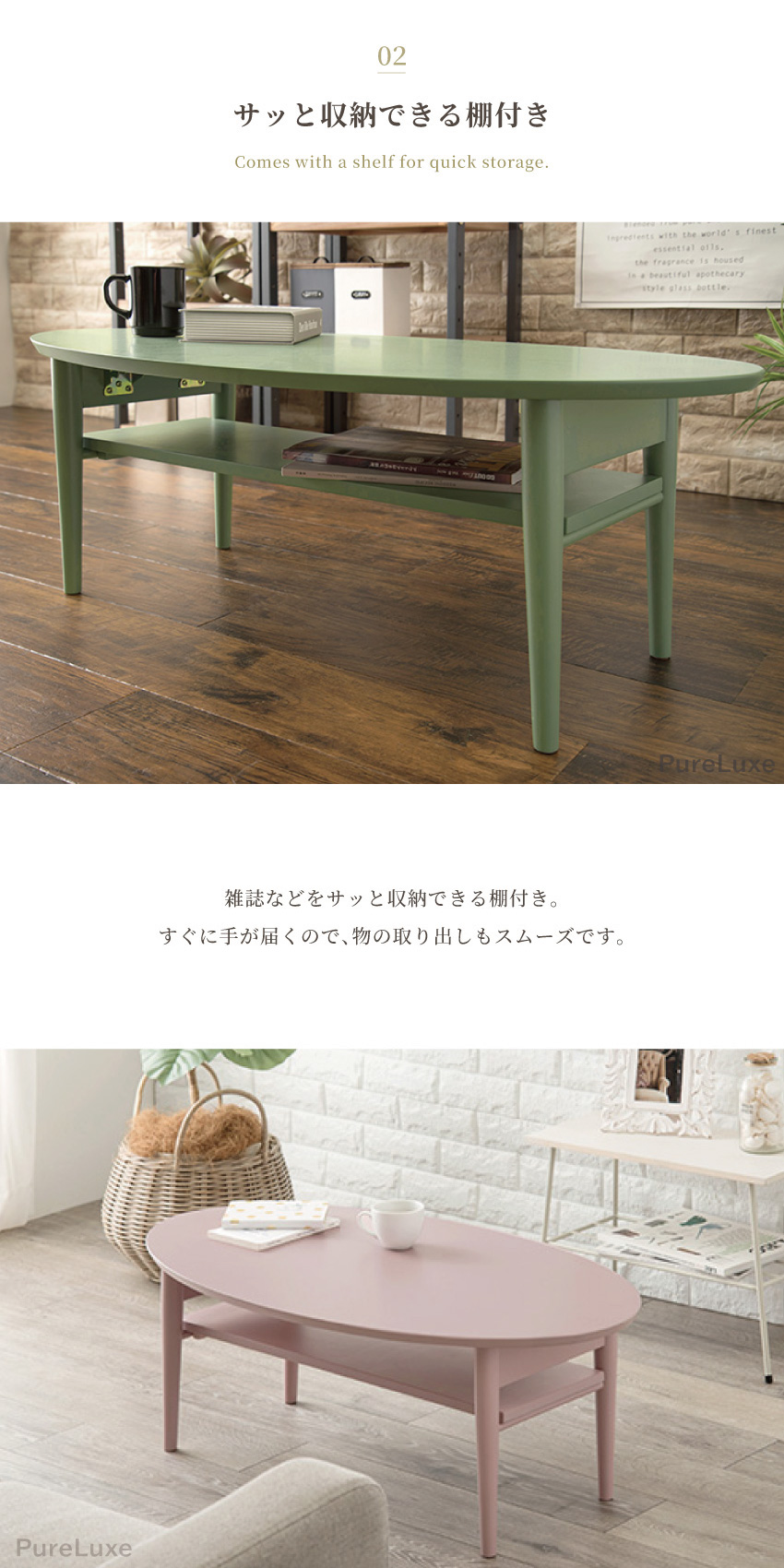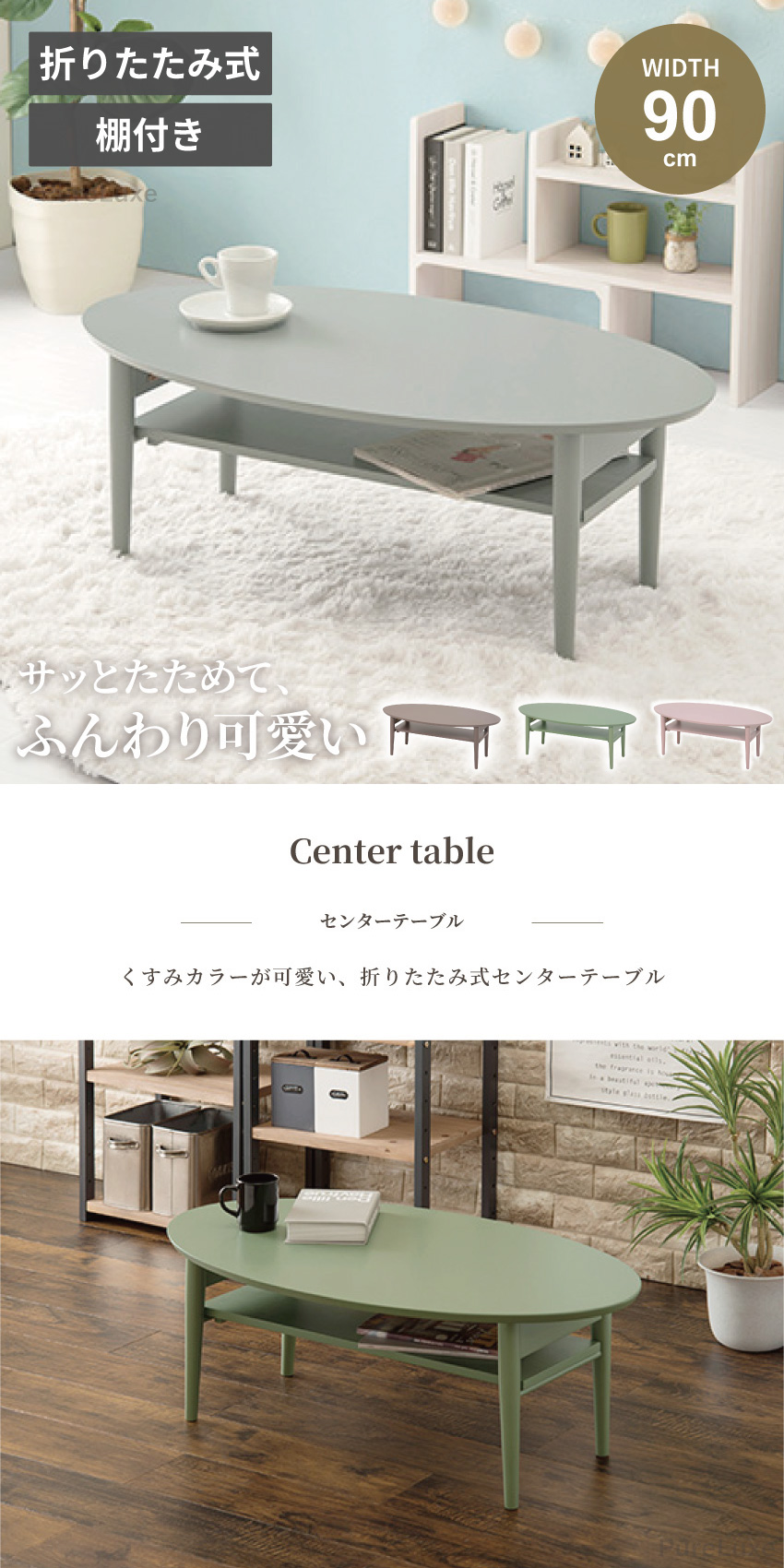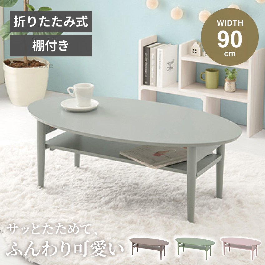 | ワンルームや子ども部屋に置きやすいコンパクトな折れ脚テーブル。物が置けて便利な棚付き、使わない時は脚を折り畳んでサッと収納。見た目も可愛いオーバル型で4種類のカラーの中からお部屋にぴったりなテーブルを見つけてください。 | ||