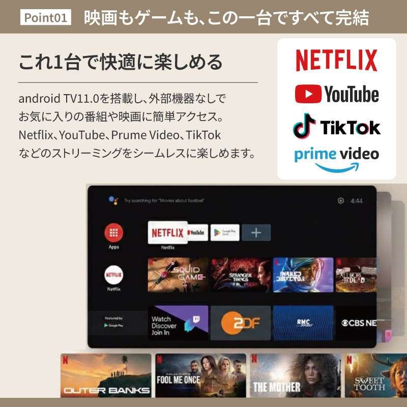 GoogleTV搭載でNetflixなど人気アプリに簡単アクセス