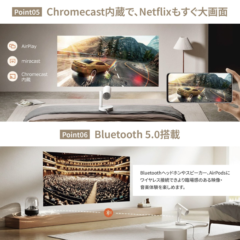 AirPlayとChromecast対応で大画面へ簡単ミラーリング