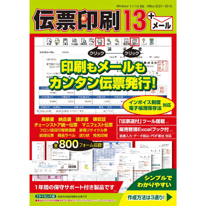 <font color='red'>在庫がある場合は『24時間以内に出荷』と表示し、出荷しております。お取り寄せの場合は納期未定となっておりますのでご了承ください。</font><!-- 20250801-->TB伝票印刷 13CIDD54_SP納品書、請求書、マニフェスト伝票など幅広く伝票を収録。印刷もメールも同じ操作で簡単にできます。安心の1年保守サポート付き。<インボイス・電子帳簿保存法 対応>幅広い伝票類を、簡単に印刷、メール送信、PDF書き出しが、同じ操作感でできるソフトです。収録フォームは、見積書、納品書、請求書、領収書から、チェーンストア統一伝票や産業廃棄物、建設系マニフェスト伝票、フロン管理票、家電リサイクル券といった業界用の伝票、宛名各種・商品ラベルなど幅広い用紙フォームを収録。データ作成方法は3通り。1.直接入力、2.外部データ読込、3.販売管理Excelブックの利用。PCが苦手な方にも簡単、さらに1年間保守サポート付きで安心です。会員向け「伝票送付」ツール搭載…【発売日】2024年09月06日