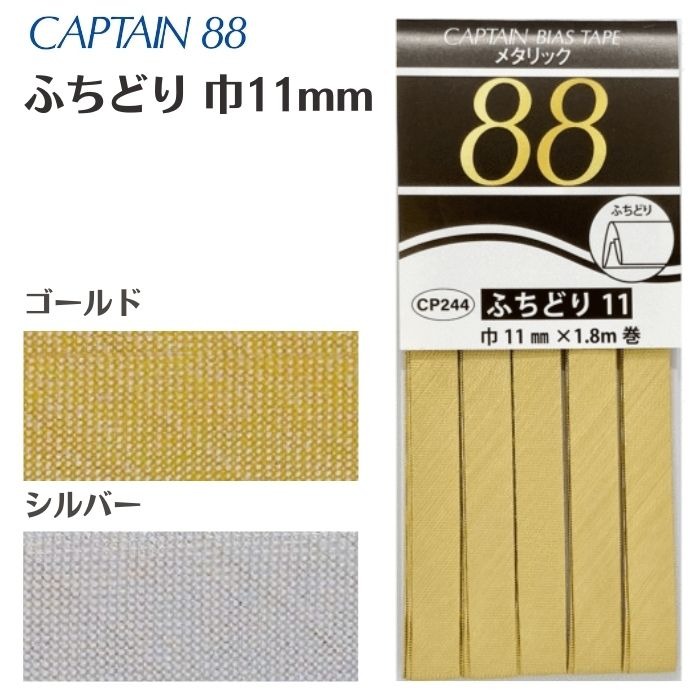 メタリックふちどり 11 CP244 バイアステープ バイヤス バイアス キャプテン CAPTAIN 金 銀 ゴールド シルバー ふちどり コスプレ 舞台 衣装 11mm幅 爆買い