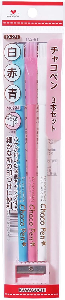 チャコペン 3本セット 削り器入 白 青 赤 19-271 KAWAGUCHI チャコペン 手芸 裁縫 ハンドメイド 爆買い