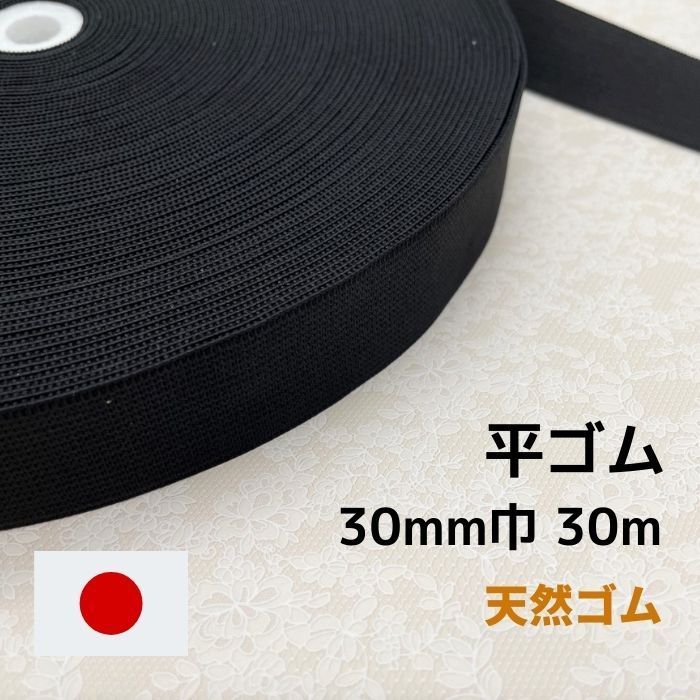 ゴム 平ゴム 天然ゴム GP330 黒 30mm幅 30m 日本製 工業用 業務用 手芸 替えゴム パジャマ ウエスト パンツ 編みゴム
