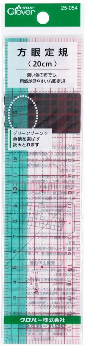 方眼定規 20cm 25-054 定規 クロバー Clover 手芸 裁縫 ハンドメイド ものさし 定規 すそ上げ 裾上げ しるし付け