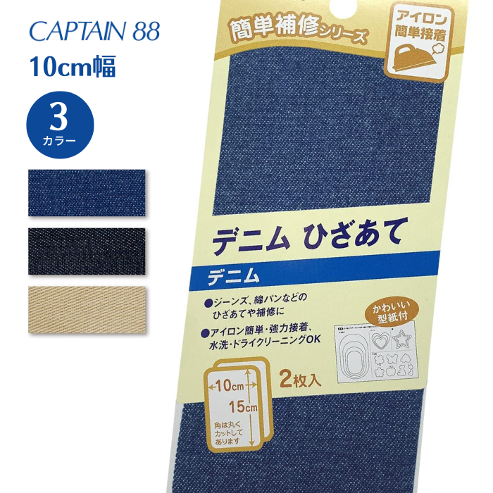 デニムひざあて CP135 キャプテン CAPTAIN ジーンズ 綿パンツ デニム ベージュアイロン接着 綿 補修 補強 ハート 星 丸形