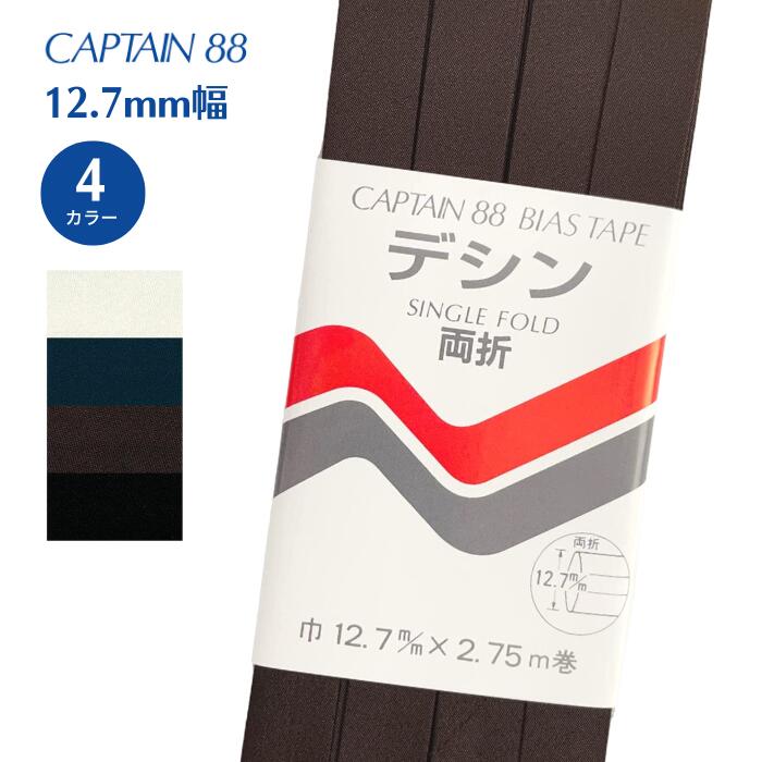 デシン CP14 キャプテン CAPTAIN バイアステープ バイヤス バイアス 白 黒 紺 薄い生地 縫い代 縫いしろ ポリエステル