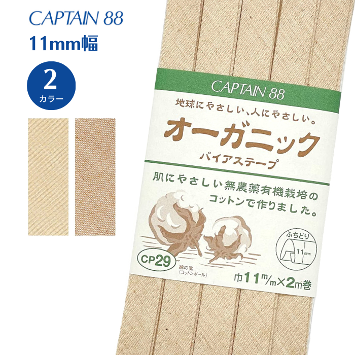 オーガニックバイアステープ ふちどり11 CP29 バイアス キャプテン CAPTAIN コットン 綿100% 赤ちゃん ふちどり