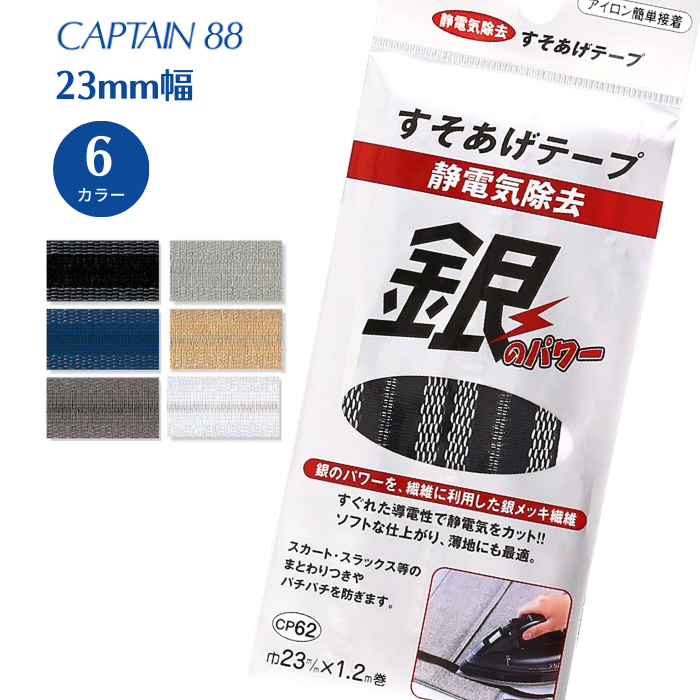 静電気除去すそ上げテープ CP62 キャプテン CAPTAIN 静電気 裾上げ すそあげ 防菌 防臭 アイロン接着 23mm幅 爆買い