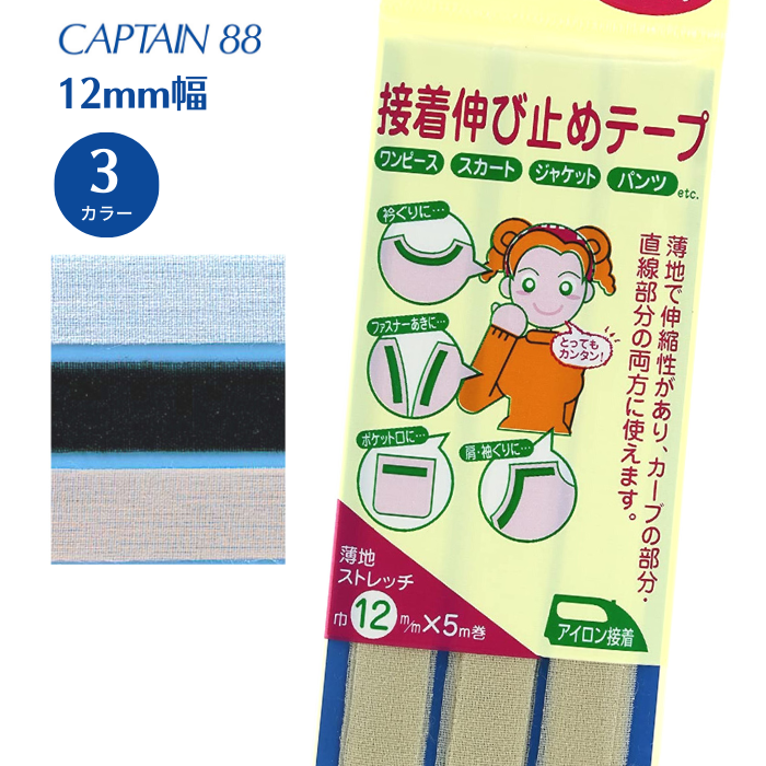 接着伸び止めテープ CP79 バイアス キャプテン CAPTAIN 薄地 ストレッチ 伸縮性 伸び止め 12mm幅 爆買い