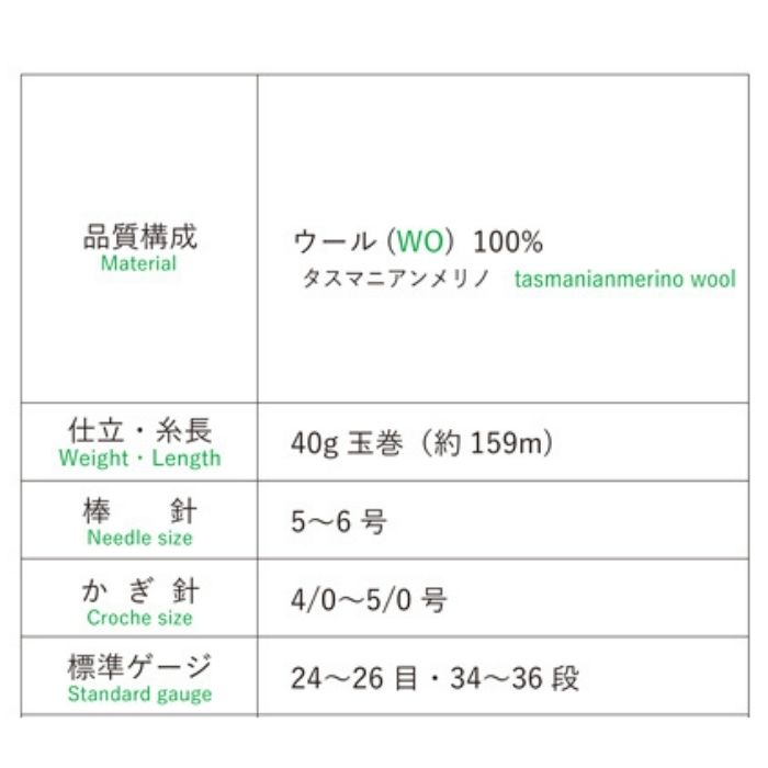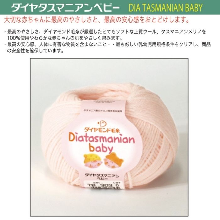最高のやさしさ、ダイヤモンド毛糸が厳選したとてもソフトな上質ウール、タスマニアンメリノを100%使用。