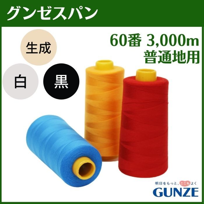 ミシン糸 グンゼスパン 60番 3,000m 普通地用 白 黒 生成 大容量 工業用 業務用 手芸糸 洋裁 手芸 グンゼ 糸