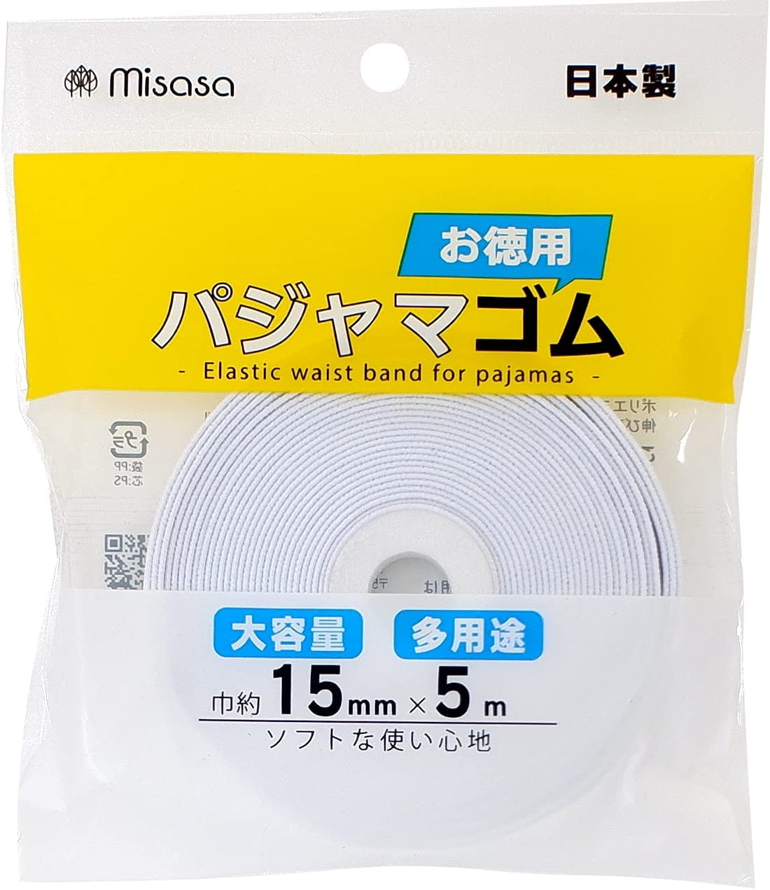 お徳用 パジャマゴム 15mm 5m ミササ 6237 平ゴム ウエスト パンツ 編みゴム 手芸 裁縫 ソーイング パジャマ