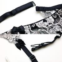 生地は黒のチュールレースに白糸で刺繍されてた白黒カラーレースのガーターベルト。