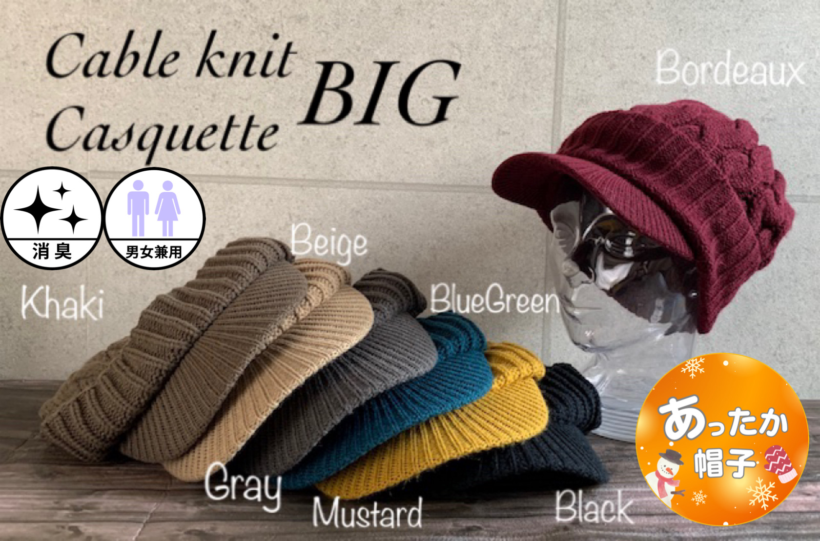 7色展開 帽子 BIG 大きい L サイズ ケーブル編み ニット キャスケット ゆったり 秋冬 防寒 メンズ レディース 男女兼用 【店内商品2点以上ご購入で送料無料】