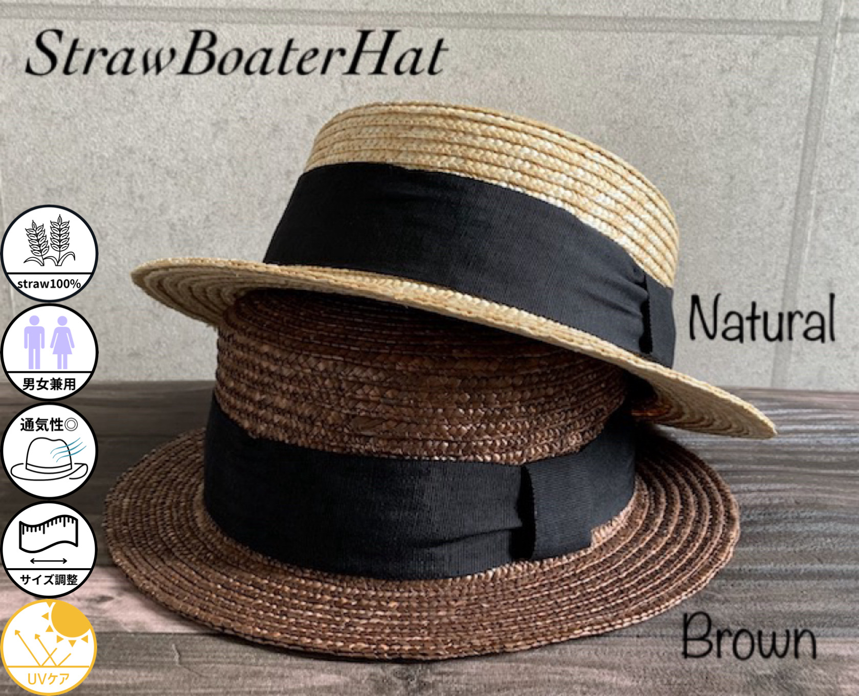 2色展開 帽子 カンカン帽 麦わら ストローハット 幅広 リボン 天然素材 春 夏 ストロー ハット 定番 サイズ調整 日よけ 【店内商品2点以上ご購入で送料無料】