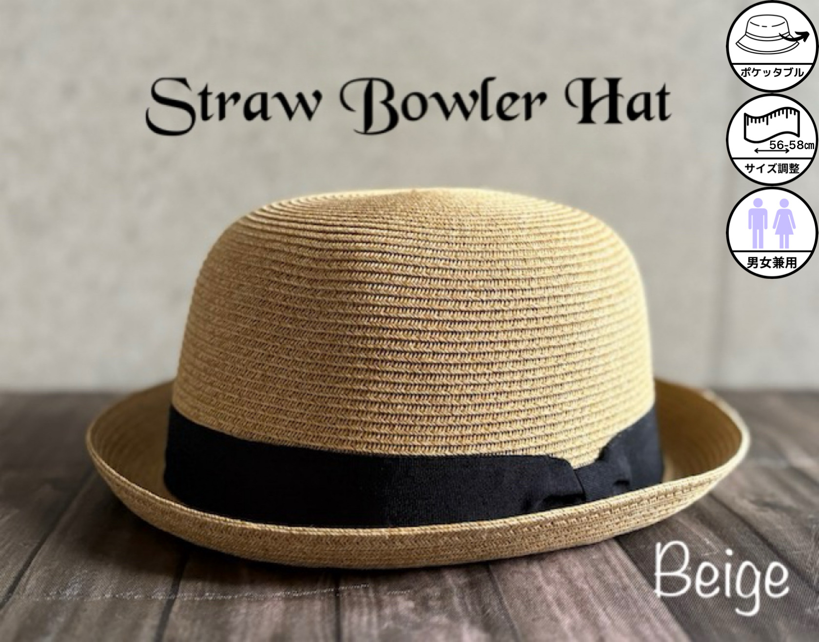 【最短当日発送】 帽子 ボーラーハット ストロー ハット 細ブレード 上質 春 夏 リボン メンズ レディース UV 折りたためる サイズ調整 【複数ご購入送料無料】