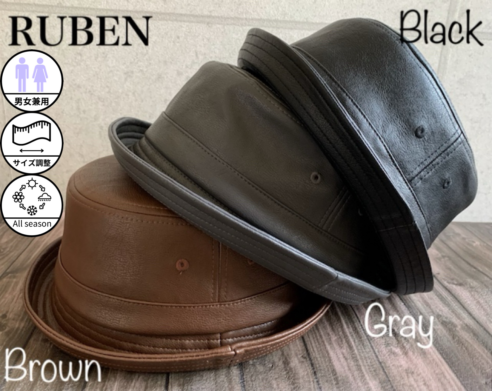 帽子 Ruben ルーベン レザー ポークパイ ハット エコレザー シンプル オールシーズン ECO LEATHER PORKPIE HAT 【店内商品2点以上ご購入で送料無料】