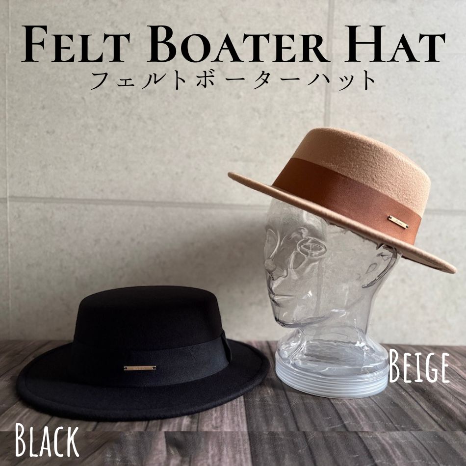 クラシカル な雰囲気を楽しめるフェルト素材のカンカン帽