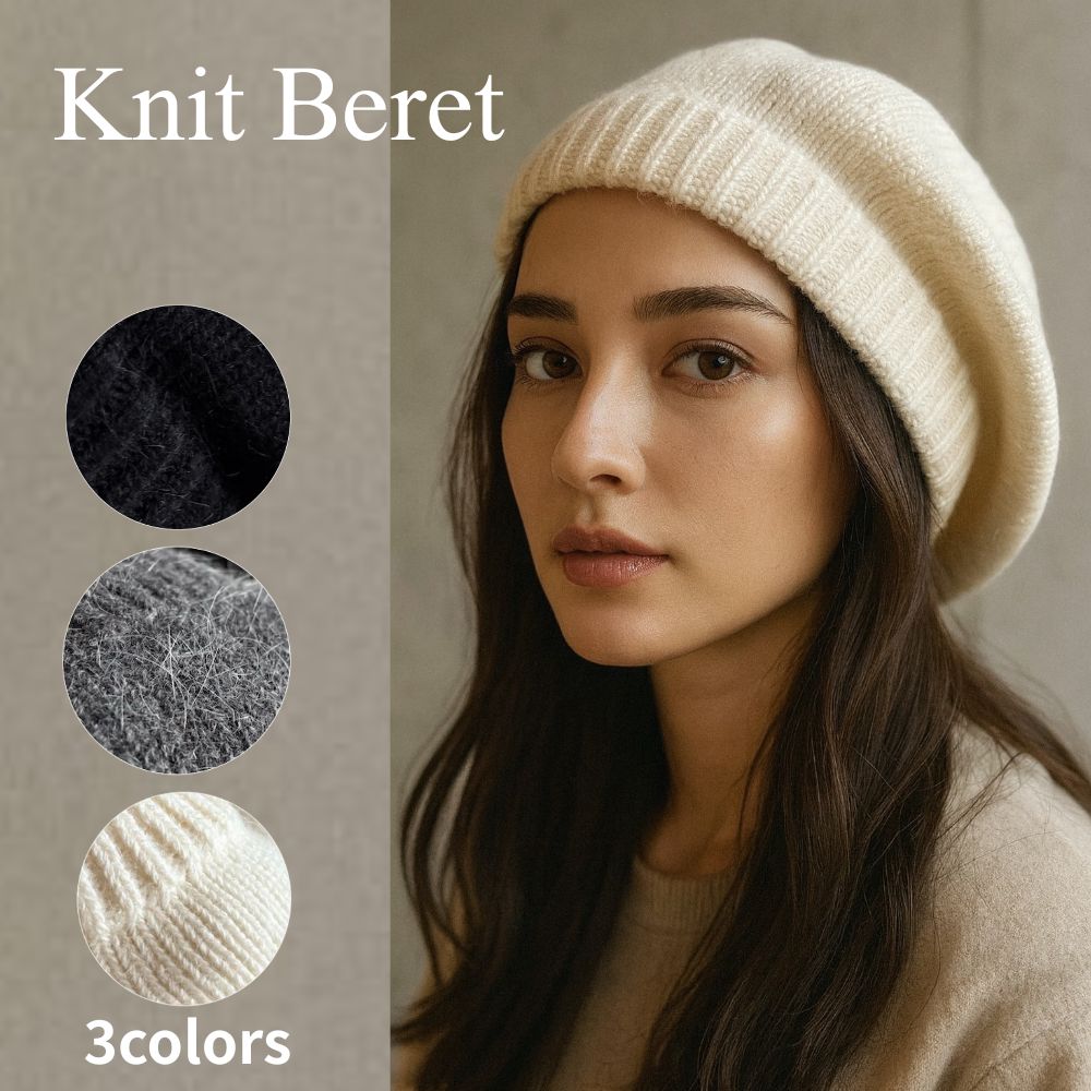 【最短当日発送】 3色展開 帽子 ニットベレー モヘア調 ニット ベレー帽 リブ 伸縮性抜群 なめらか 秋 冬 男女兼用 シンプル エコファー 【複数ご購入送料無料】