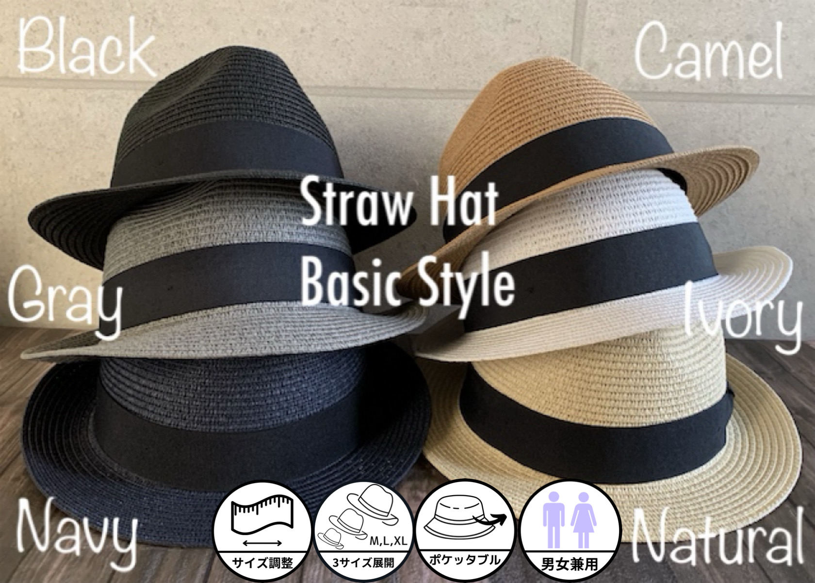 3サイズ展開 帽子 ストローハット 中折れ ハット 折り畳み サイズ調整 たためる帽子 シンプル M L XL サイズ 男女兼用 【店内商品2点以上ご購入で送料無料】