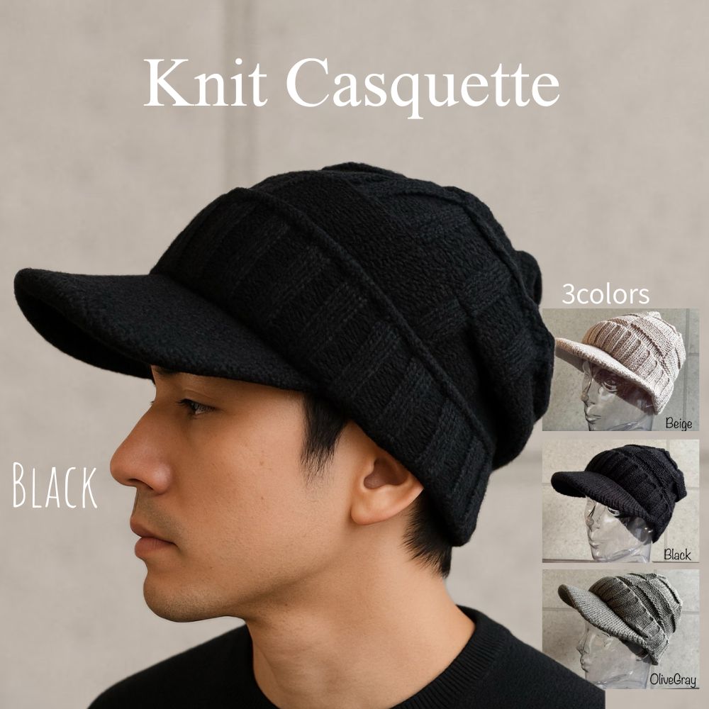 ベーシックなツバ付きニットキャスケットです。