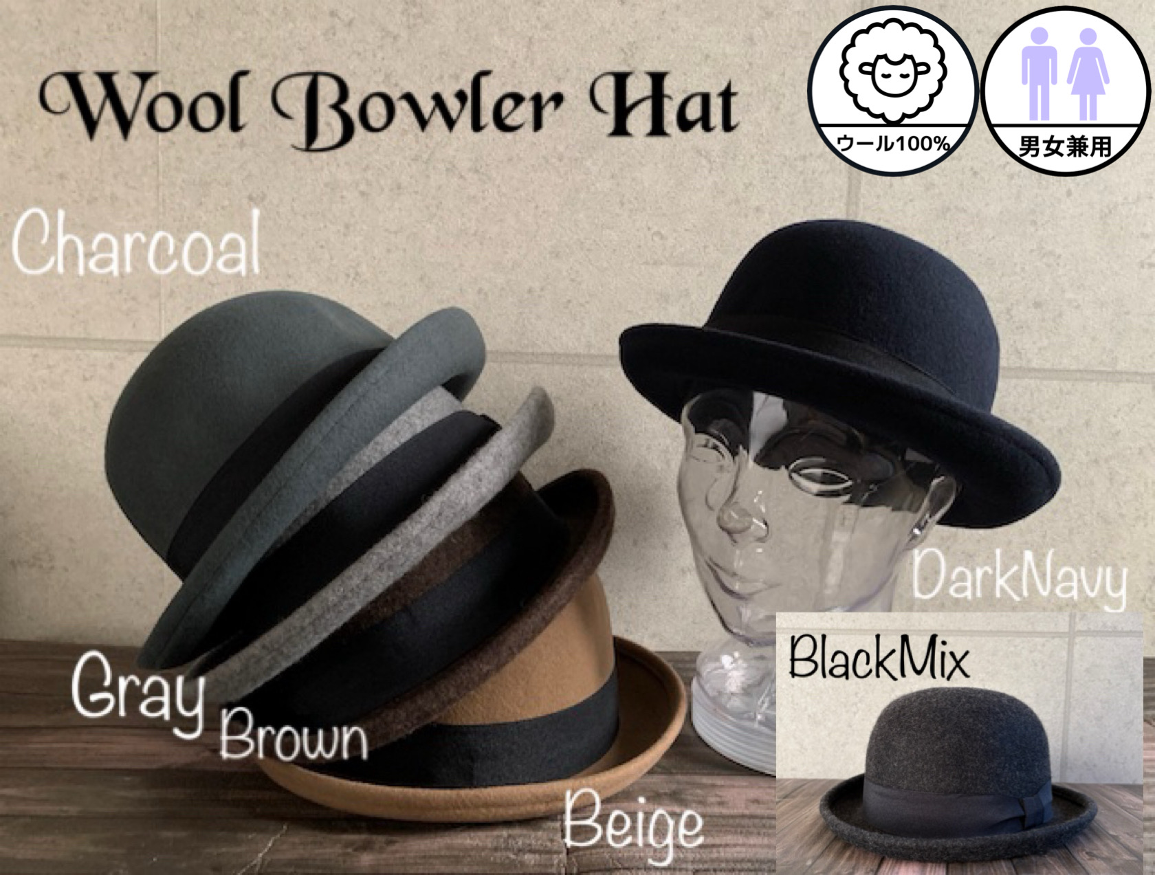 6色展開 帽子 ウール フェルト ボーラー ハット ダービーハット ウール100% 58.5cm Mサイズ 男女兼用 メンズ レディース 【店内商品2点以上ご購入で送料無料】