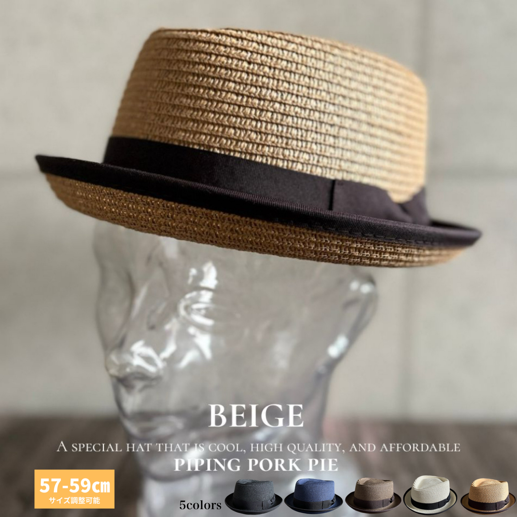 帽子 パイピング ポークパイ レイハット ストロー カンカン帽 ハット メンズ レディース 紫外線対策 サイズ調整 春夏 【店内商品2点以上ご購入で送料無料】