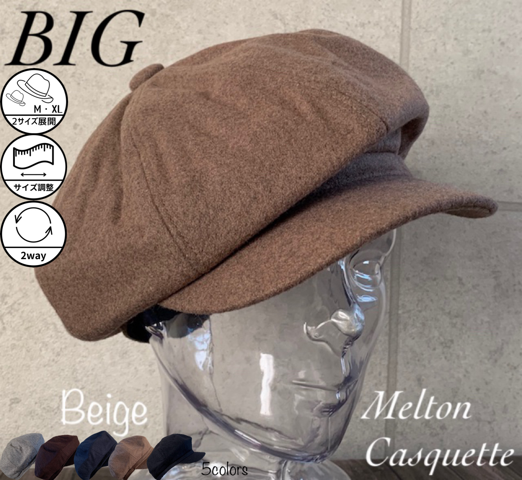 2サイズ展開 特価 帽子 キャスケット メルトン 2WAY サイズ調整 アップル 男女兼用 秋冬 M BIG 大きい サイズ 【店内商品2点以上ご購入で送料無料】