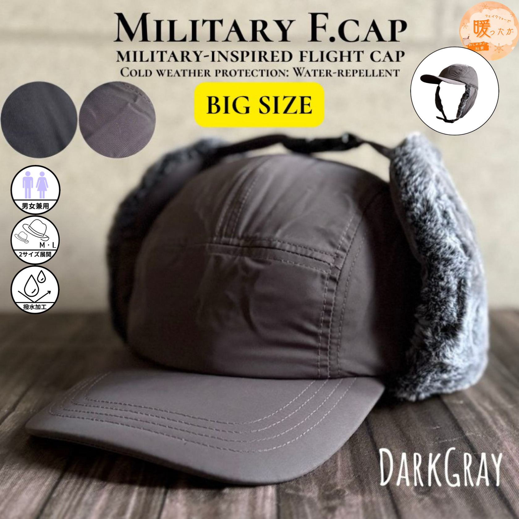 【最短当日発送】 2サイズ展開 帽子 撥水加工 フライトキャップ 耳当て付 ミリタリースタイル 中綿入り 防寒 ナイロンライク素材 MA-1風 【複数ご購入送料無料】