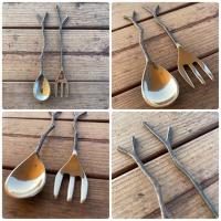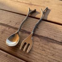 【 送料無料 】 真鍮 (しんちゅう) 枝スプーンと枝フォークのセット Lサイズ アンティーク風 お家カフェ アウトドア キャンプ おしゃれ カフェスタイル ブラス