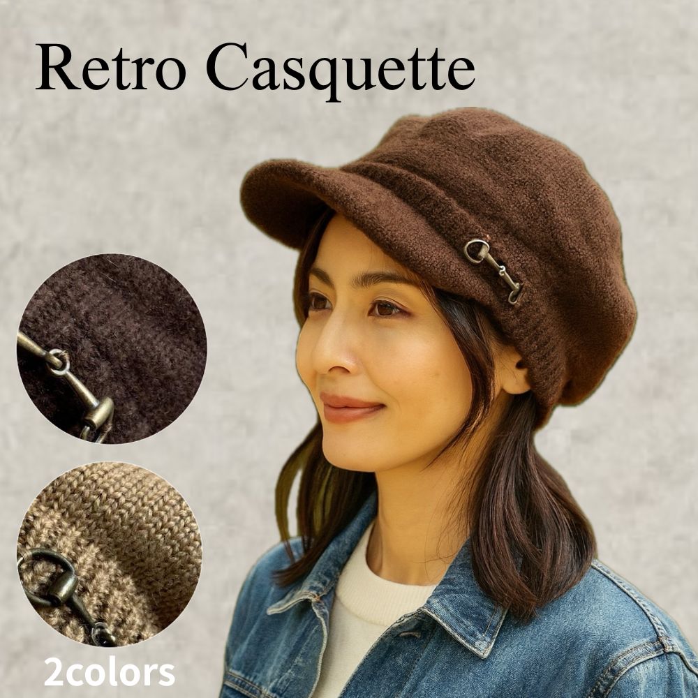 特価 2色展開 帽子 ニット キャスケット ボリューム つば付き ベレー レトロ ニットキャップ 秋冬 ウール 防寒 ビット 【店内商品2点以上ご購入で送料無料】