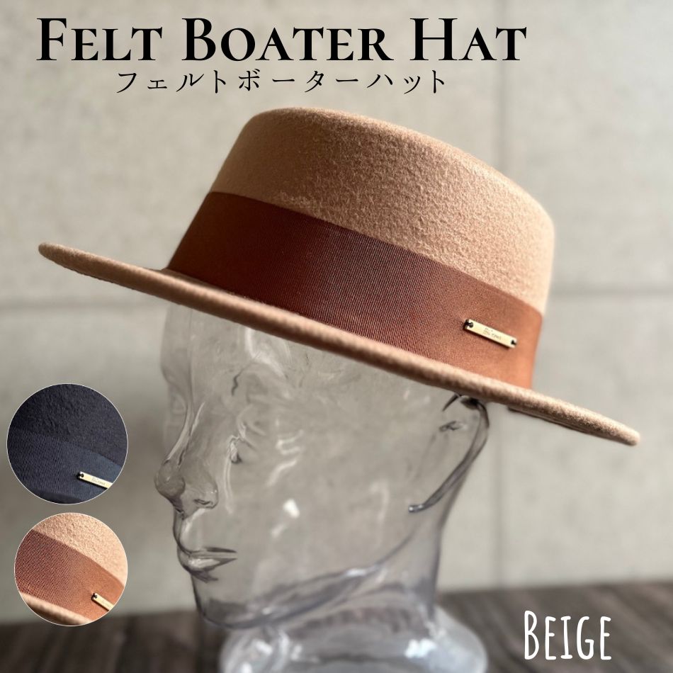 クラシカル な雰囲気を楽しめるフェルト素材のカンカン帽