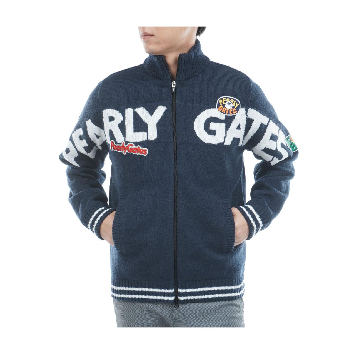 部分ジャカード×ストレッチ裏地付き 前開きセーター