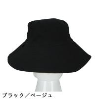 リバーシブルのロングバケットハット。ファッションに合わせて、ブラック/ベージュでお使いいただけます。あご紐に取り外し可能なドローコード付きなので、強風時や自転車などでも使用できます。ロングタイプなので、ガーデニングやアウトドアにもオススメです。